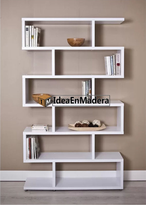 Librero organizador con 6 niveles moderno y de estructura firme. El mueble está fabricado de MDF muy resistente y terminado en esmalte del color de preferencia del cliente.