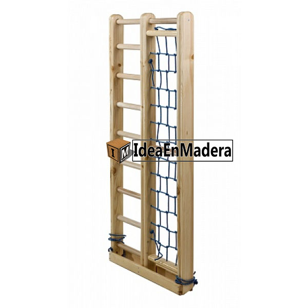 Módulo Infantil de madera fabricado en madera de pino con acabado en madera natural ó madera multiplay. Ideal para que los pequeños puedan ejercitarse, diversas actividades, escalar, resbalarse, colgarse y mucho más