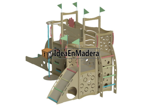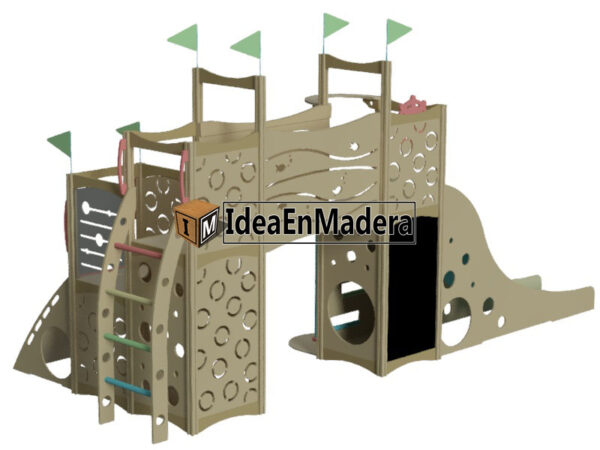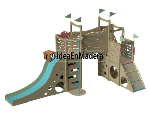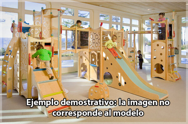 El juego es un set de juegos infantiles ideal para interiores, ludotecas y espacios ambientados para pequeños.