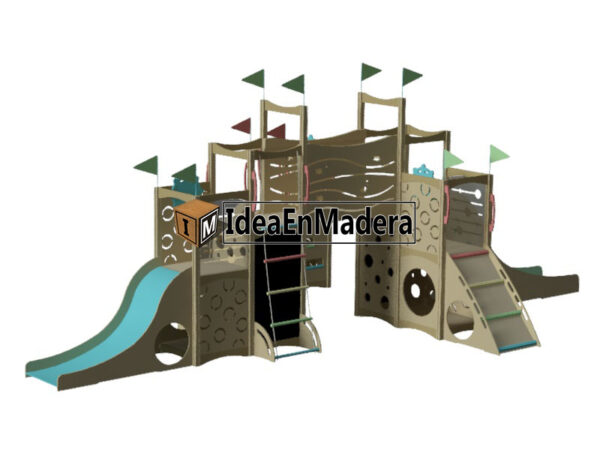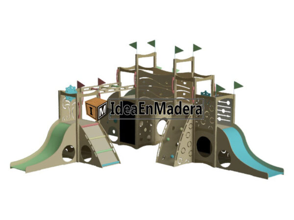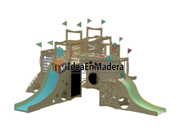 El juego es un set de juegos infantiles ideal para interiores, ludotecas y espacios ambientados para pequeños.
